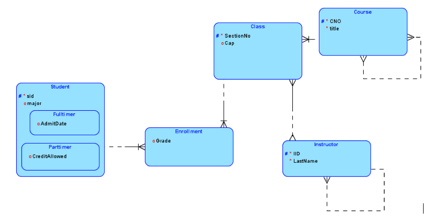 Review: Course and Sections (why splits), Course and Prerequisites (Two entities or one?), Grade (where to store it), minimum grade required for prerequisites