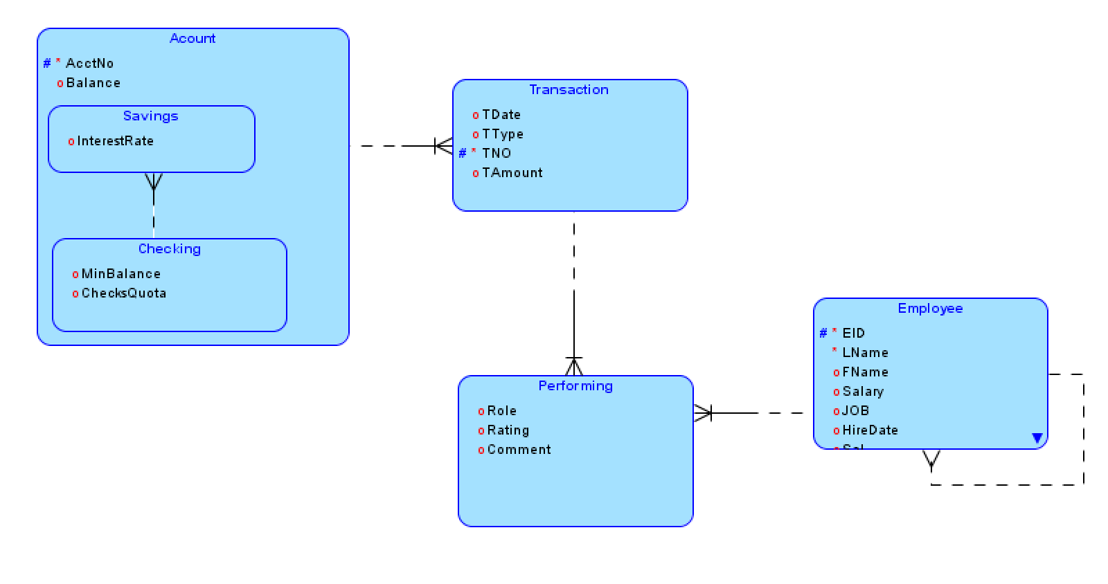 Transform the following E-R diagram into a relational model. Then create the database using Oracle.