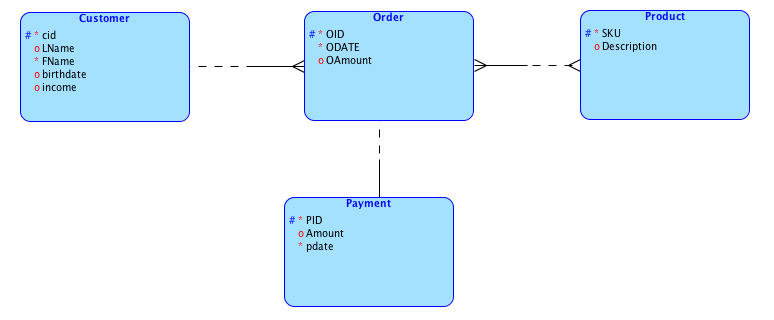 Example 1: Convert the ERD for Customer – Order – Product problem into the relational model