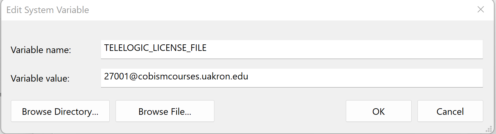 - After the variable value is entered, press a few OK buttons to dismiss dialog boxes to close System Properties.