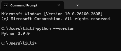 - Check Python installation: Open Windows Command Prompt (type cmd in Windows search Box to find Windows Command Prompt) and type "python --version" to make sure you have Python 3.9 installed.